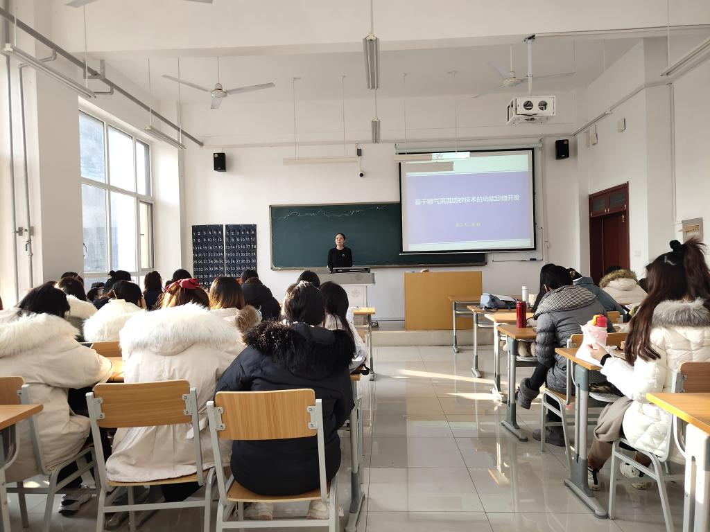 2020年12月3日,公司在明理楼0143教室组织召开“基于喷气涡流纱技术的功能纱线开发”学术报告会。报告会由公司三级教授张梅老师主讲。