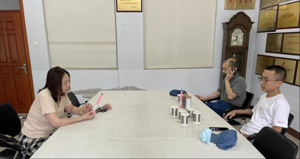 9月18日,伟德国际1946官网张梅教授赴德州华源生态科技有限公司,就新型功能性面料的开发,与相关技术人员进行沟通,确定了面料的原材料、结构、规格及性能等,并进行试纺。
