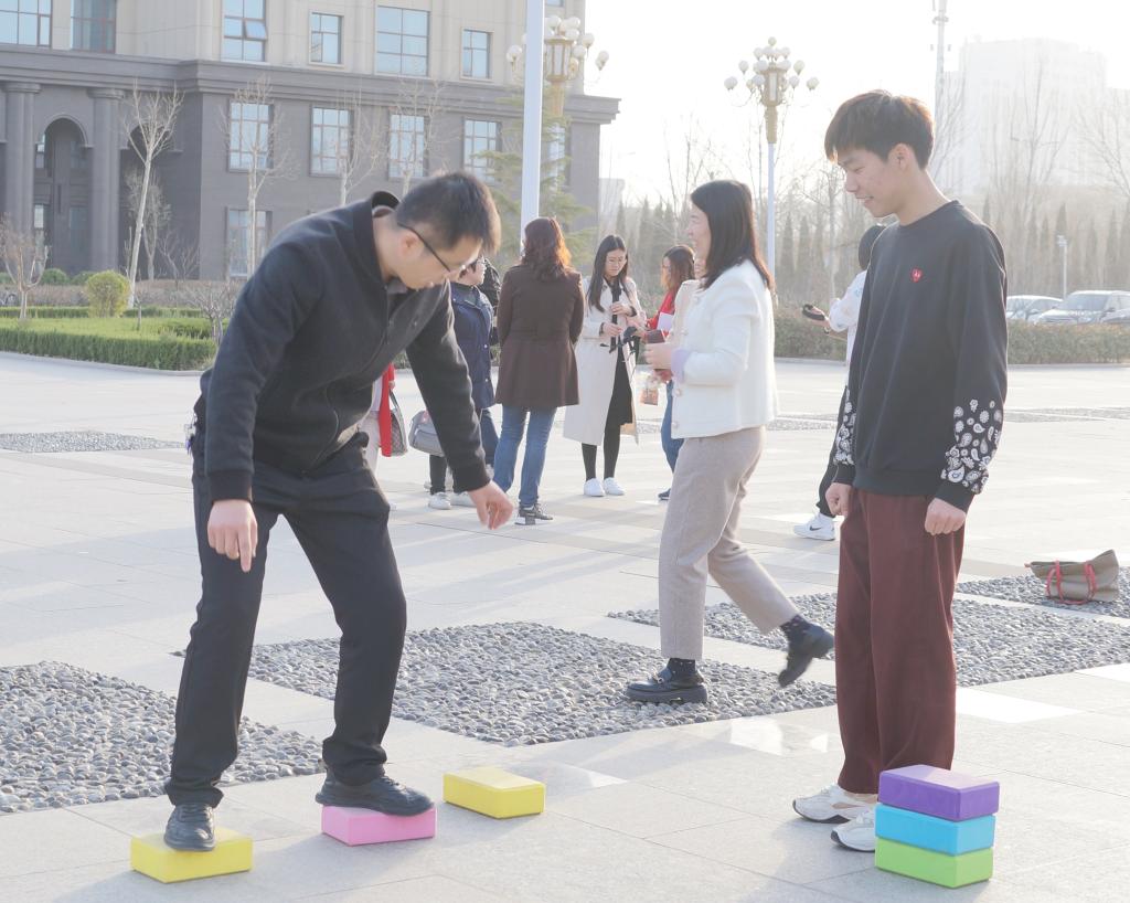 随后,学院全体教职工前往腾飞广场进行趣味游戏,公司工会准备了套圈、“两人三足”、“摸石头过河”等趣味游戏,女教师们各个摩拳擦掌,跃跃欲试,愉快的氛围令大家瞬间忘记了工作的疲惫,在欢声笑语中度过了美好的“三八”妇女节。最后大家留影纪念。