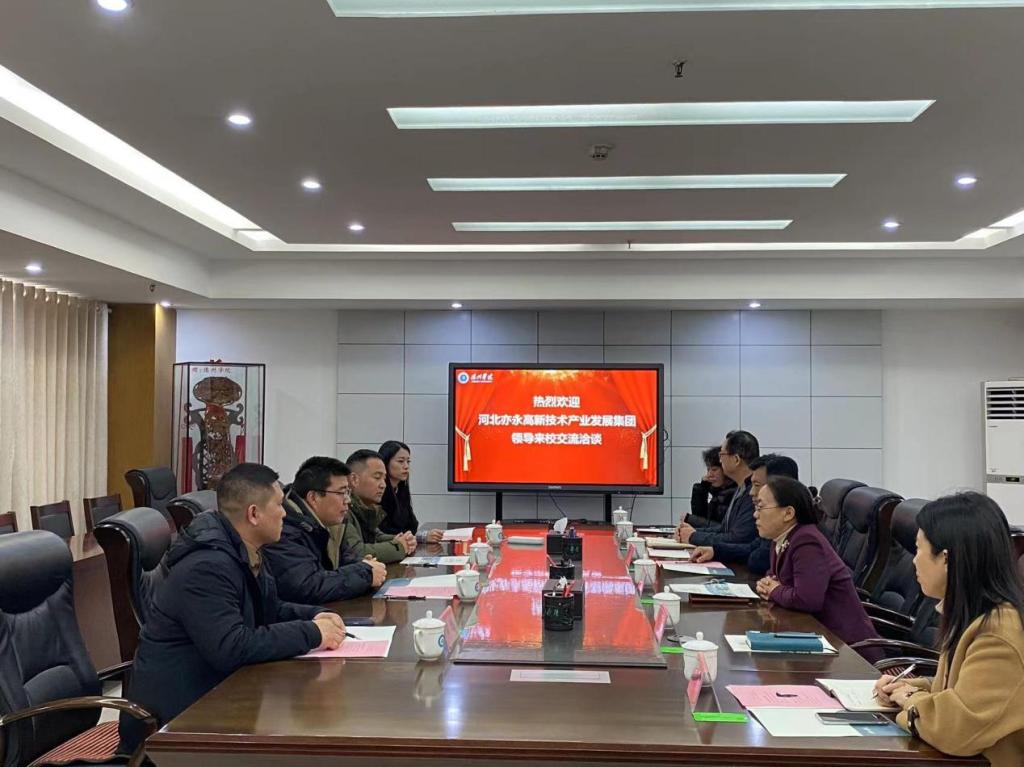 12月27日上午,河北亦永高新技术产业发展集团副董事长彭博、永清县亦永服装产业发展集团总经理符杰、永清县亦永文化传媒有限公司总经理郭培、永清县亦永文化传媒有限公司招商运营总监杨爱昌一行来校交流洽谈。公司党委委员、副董事长徐静热情接待了彭博一行并进行了深入交流。
