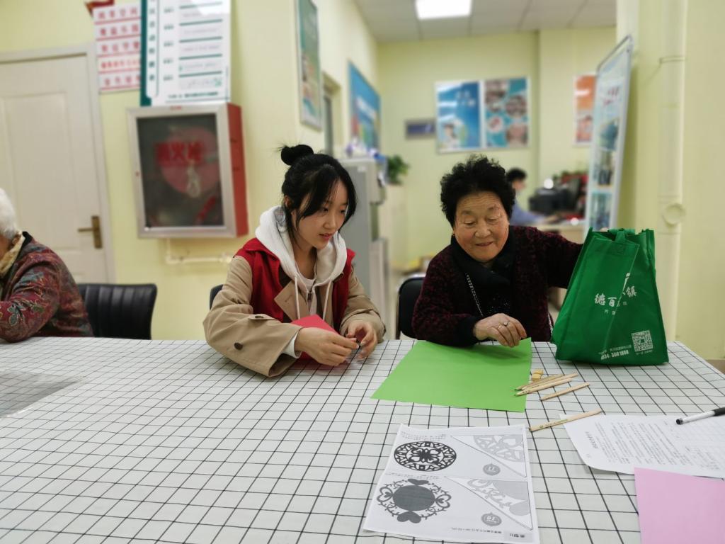下午14点30分,2020级全体“织梦未来志愿服务队”成员准时在西校门口集合,在统计完毕后前往萧何庄幸福邻里社区中心。在前往过程中志愿者们偶遇独自前行的老人,志愿者亲切的将老人请到萧何庄幸福邻里社区中心。在与老人亲切交流后,志愿者分发彩纸与剪刀,手把手的教导老人们剪纸艺术。剪纸完成后志愿者将自己制作的剪纸赠送给了老人。