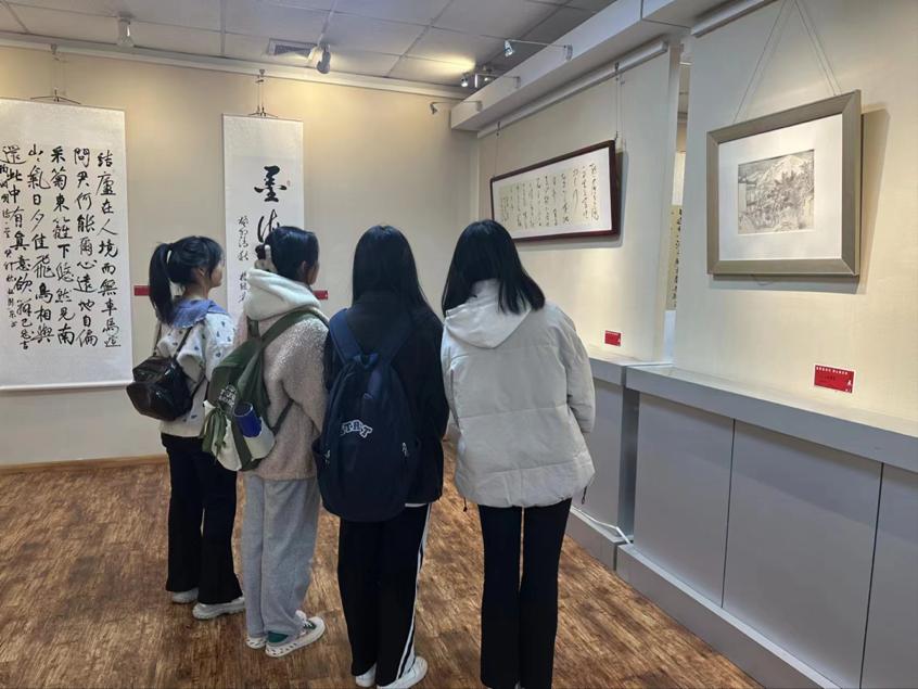 本次展览展出了涵盖书法、绘画等多件集思想性、艺术性、观赏性于一体的作品。其中书法作品主题突出、精神荟萃,绘画作品物象逼真、意境深远,作品内容展现了国家富强、民族振兴的时代风貌,讴歌了祖国的大好河山,展现出当代老员工昂扬奋进的姿态和朝气蓬勃的精神风貌。参观过程中,同学们一边欣赏,一边交流心得,不仅对作品的技法和内涵有了更深入的理解,也领略了传统书法的魅力。同学们纷纷表示,本次展览形式直观、内涵丰富,从一幅幅书画中受到了艺术熏陶、悟到了文化力量,今后将以更加饱满的热情、昂扬的斗志投入到学习生活中。
