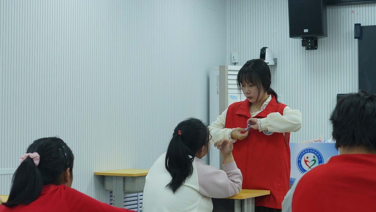 特教学校的老师和孩子们对志愿者的到来表示热烈的欢迎,在特教老师的带领下,志愿者们走进孩子们的教室中。活动开始,志愿者们将材料和工具分发给大家,并分步骤细致耐心的讲解了扭扭棒、胶带等材料的使用方法,通过现场示范的方式有条不紊的一步步引导同学们完成扭扭棒的手工制作。活动中孩子们天真灿烂的笑容感染着在场的每一个志愿者,在一次次互动中拉近了志愿者与孩子们的距离,增进了相互之间的友谊。交流环节,志愿者们表达了自己感动于孩子们的热情与努力,敬佩于特教老师们的博爱与奉献,纷纷表示将身体力行的呼吁更多人关爱特殊教育员工,为社会奉献自己的力量。