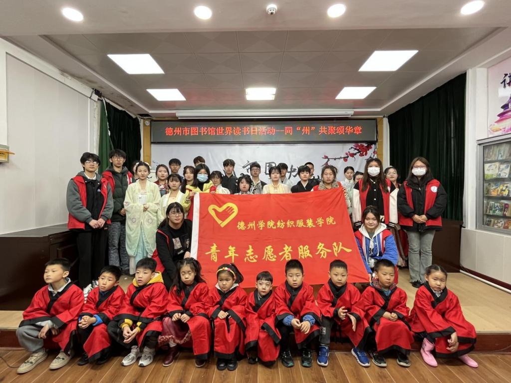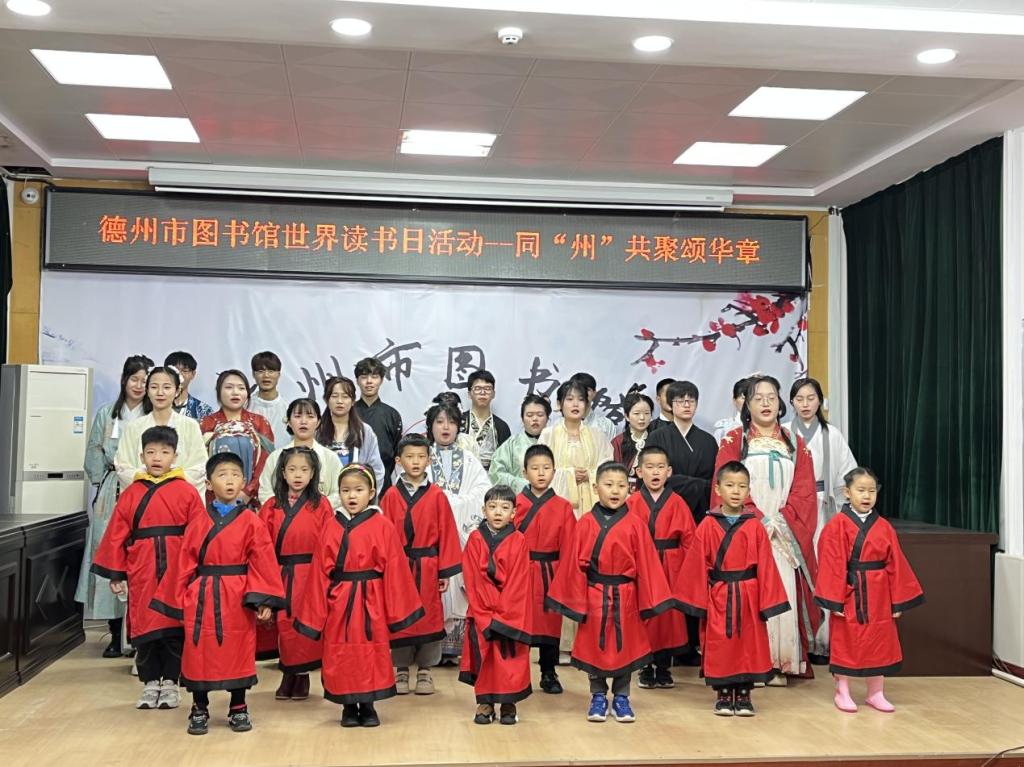为迎接“4·23世界读书日”,营造良好阅读氛围,引领群众领悟传统文化、感知传统之美,继承和发扬中华民族优良传统。4月22日下午,伟德国际1946官网联合汉服社,与德州市图书馆共同举办以“同‘州’共聚颂华章” 为主题的读书节活动。伟德国际1946官网汉服社成员和志愿者以及小朋友们参加本次活动。