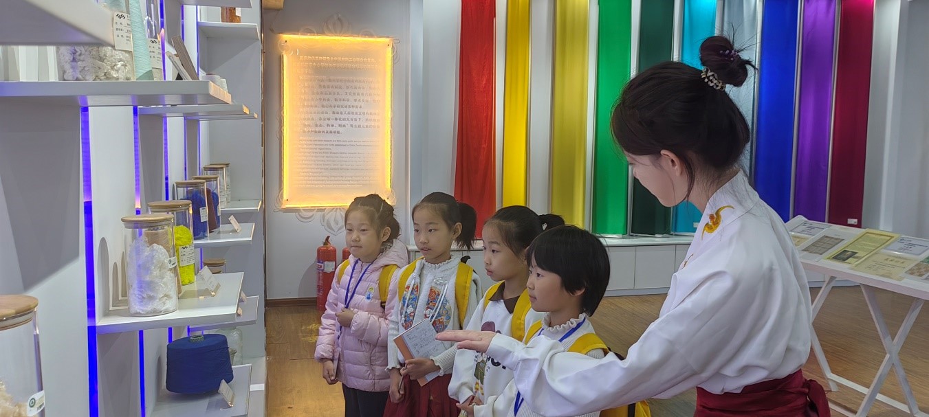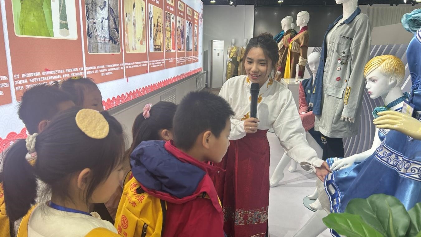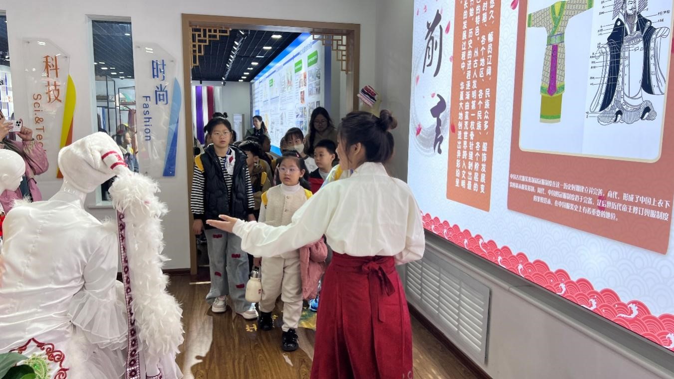 活动现场,由员工讲解员带领着小记者们先后参观了面料展室、齐鲁服饰展室、染缬艺术展室、服装展室、鲁锦展览馆等展厅。小记者们在讲解员的介绍下,切身感受到了纺织面料之美,深入了解了纺织科技的飞速发展。在面料展室,员工志愿者为小记者们详细讲解各种新型绿色环保面料和功能纱线产品,小记者们深入探索了纺织面料的奥秘。在染缬展馆,小记者们看到由公司师生共同制作的造型精美、工艺精湛的染缬艺术作品,深受震撼,纷纷竖起了大拇指。在鲁锦展馆,小记者们对云肩、肚兜、裙襕以及绣花包袱等齐鲁服饰产生浓厚兴趣,领略了山东地区独特的服饰文化和织造技艺。